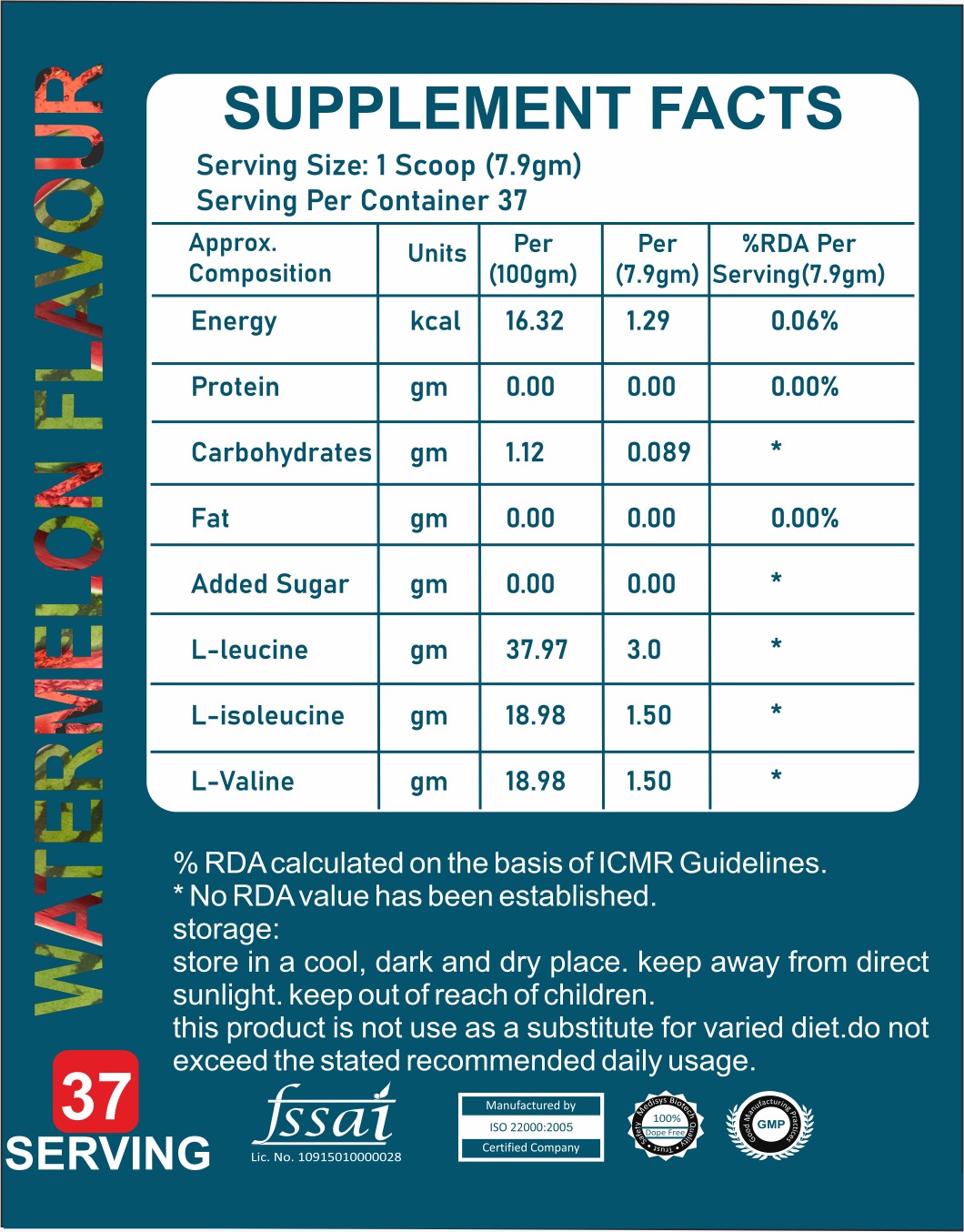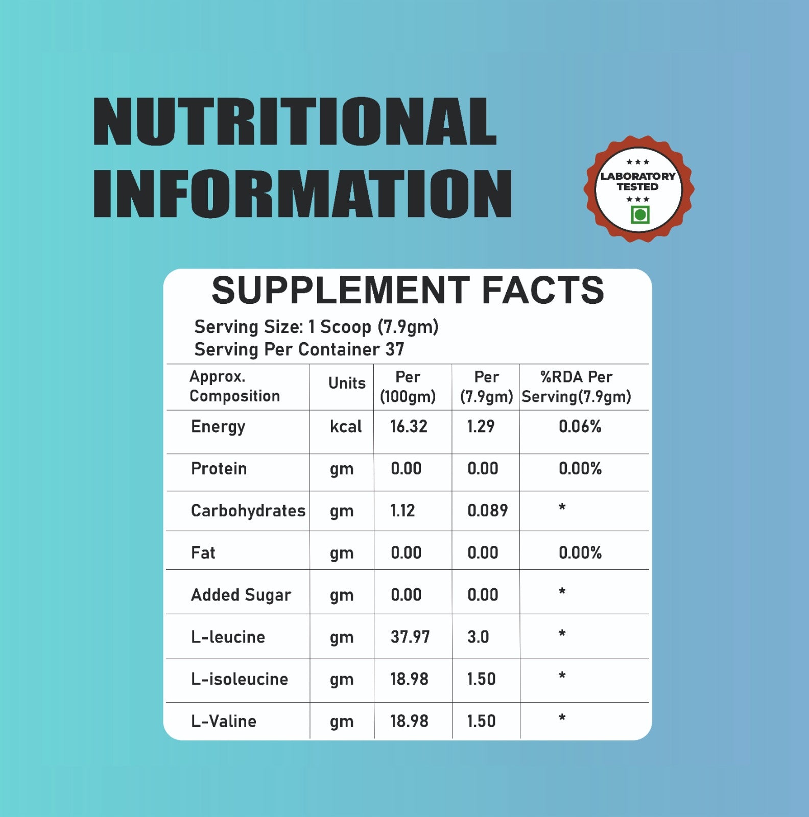 Complete Amino Blend: Contains essential amino acids (EAAs) and branched-chain amino acids (BCAAs) that support muscle recovery and protein synthesis.