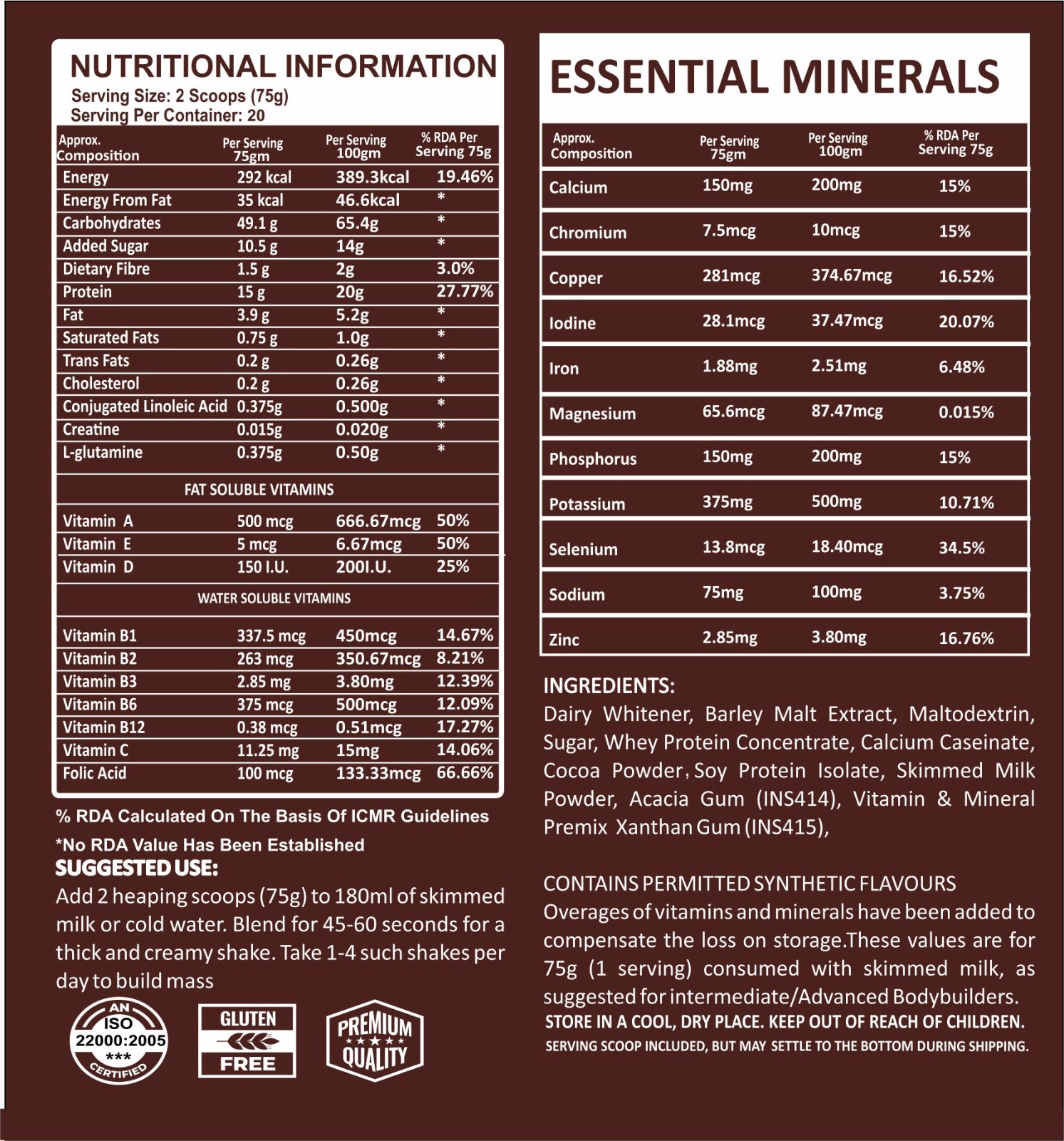 High-Calorie Content: Delivers sufficient calories for individuals looking to increase muscle mass.