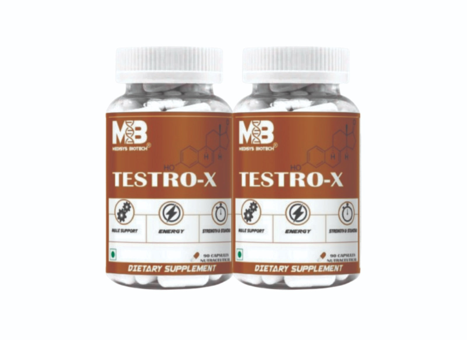 Testro-X is a dietary supplement designed to support testosterone levels and promote muscle growth. It typically targets individuals looking to increase strength, muscle mass, and energy through natural testosterone support. The pack of two typically includes two bottles, each containing a month's supply of capsules .