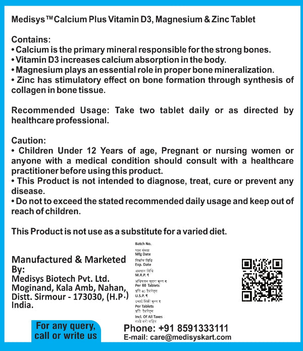 1. Consult a Healthcare Professional: Before taking Medisys Strong Calcium tablets, consult with a healthcare professional, especially if you have any underlying medical conditions or take medications.