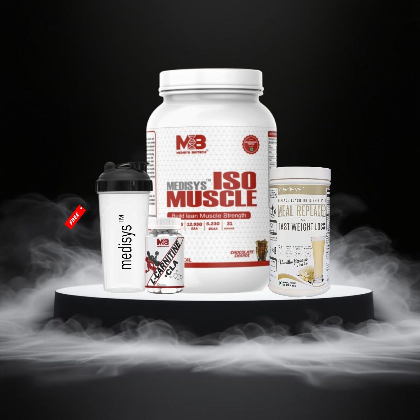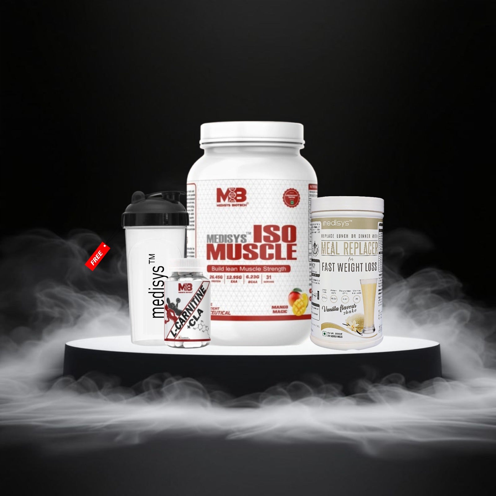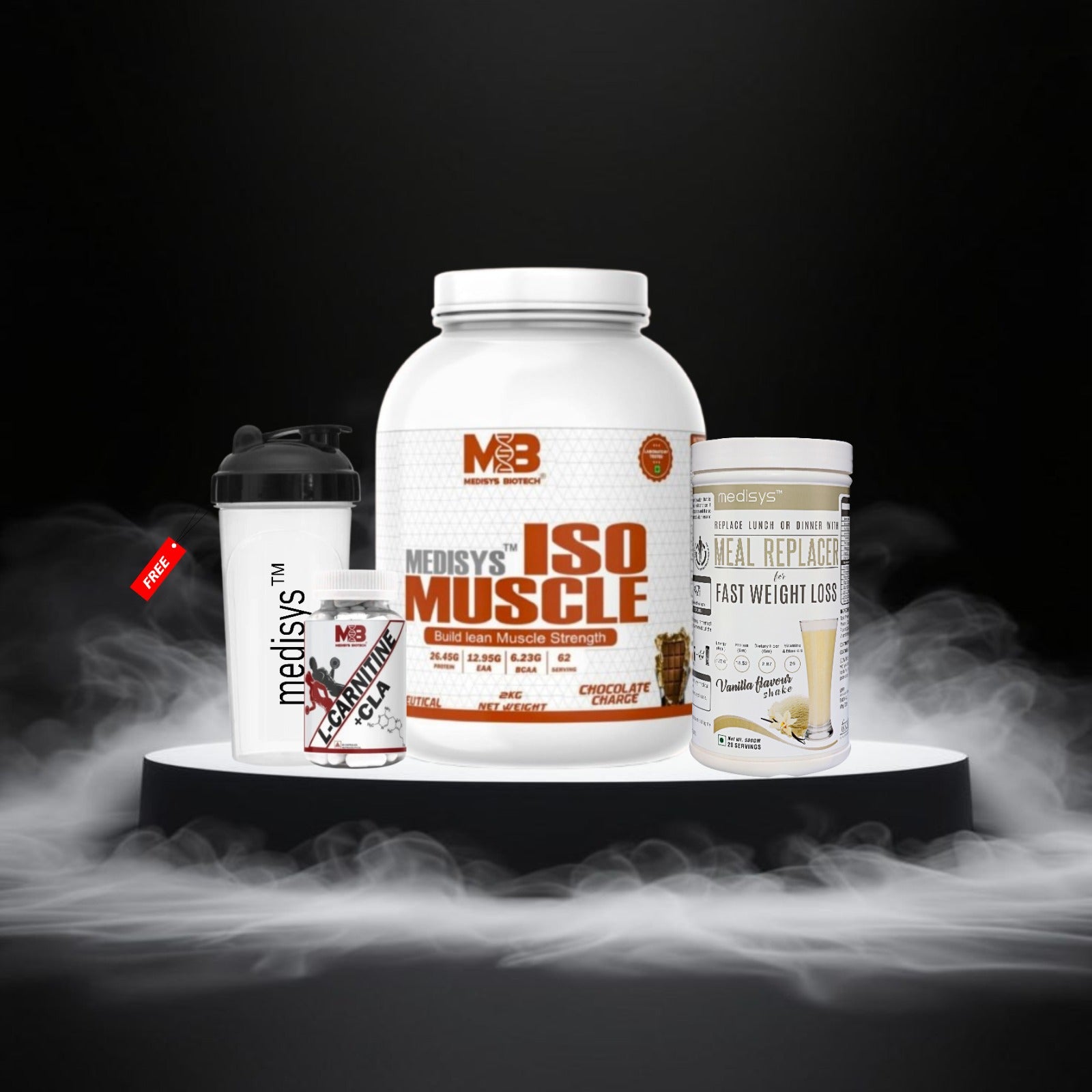Whey Isolate supports muscle building, L-Carnitine helps burn fat for energy, and the Meal Replacer controls calories while providing balanced nutrition.